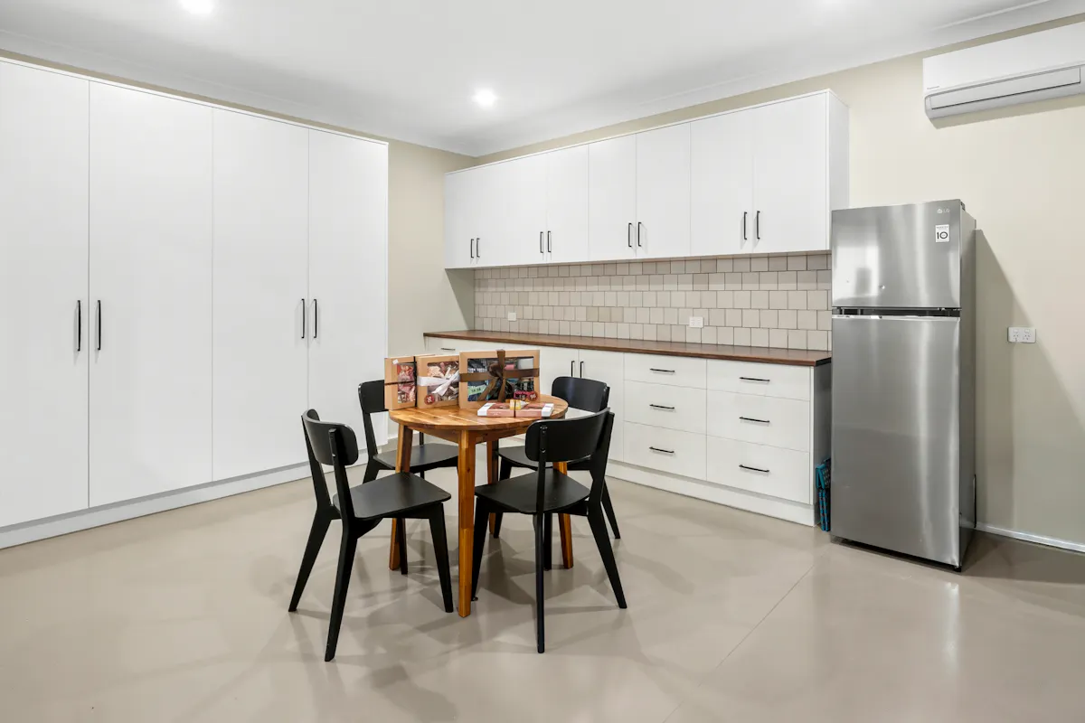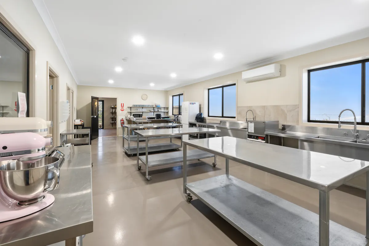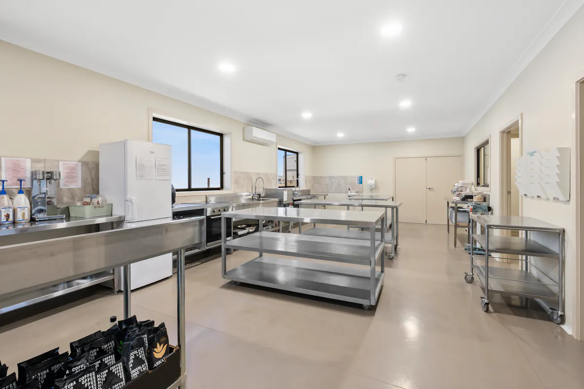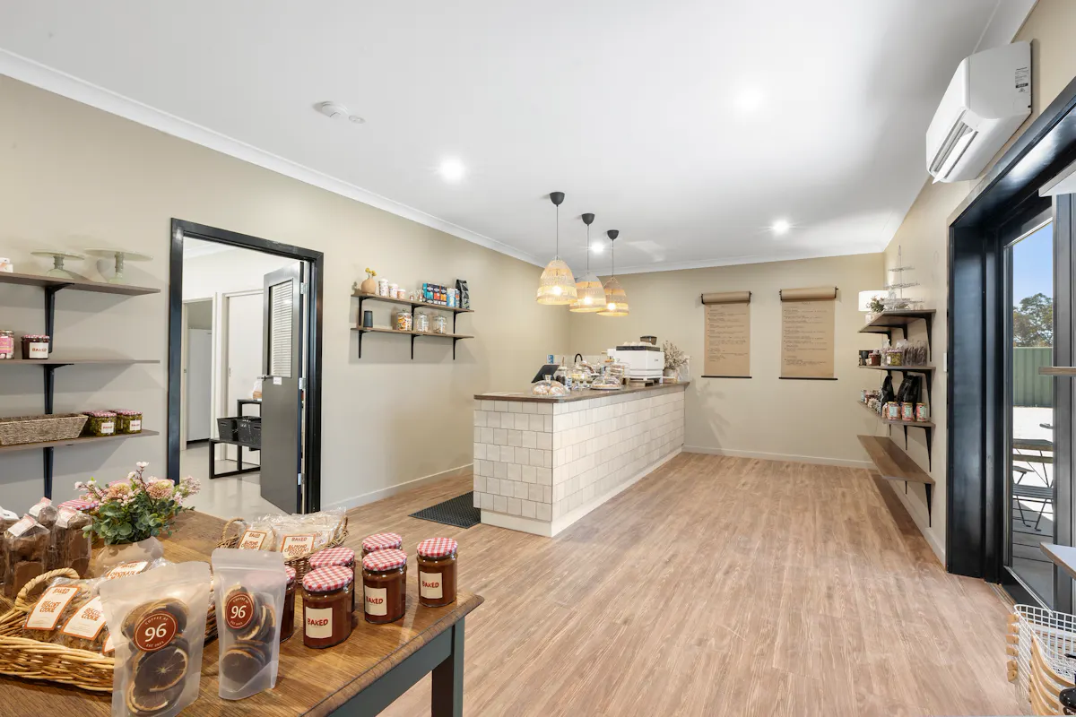 The property is well-equipped for efficient day-to-day trade, featuring a large commercial kitchen, prominent shopfront, retail/service area, shed storage, garden seating, private lunchroom, and staff amenities.